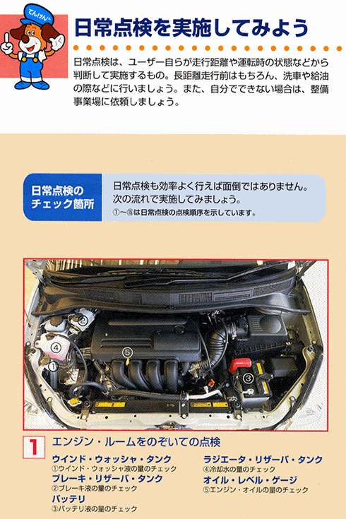 ○ エンジンルームをのぞいての点検