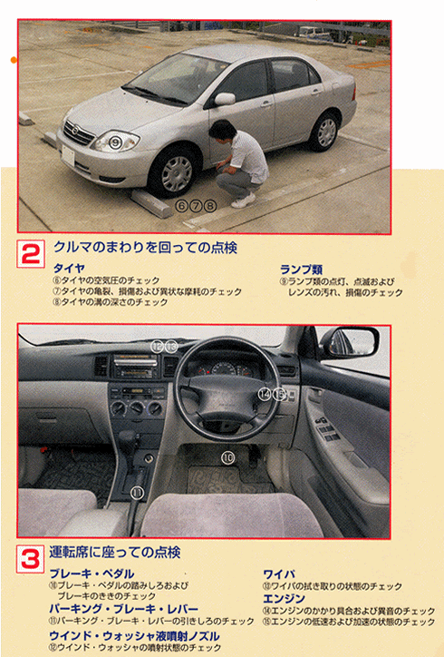 ○ クルマのまわりを回っての点検
